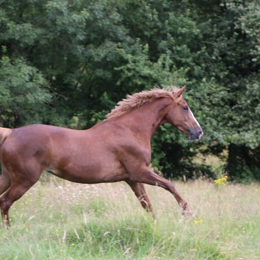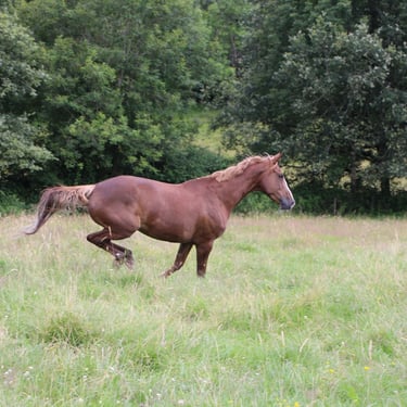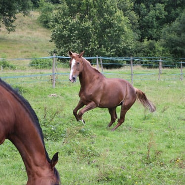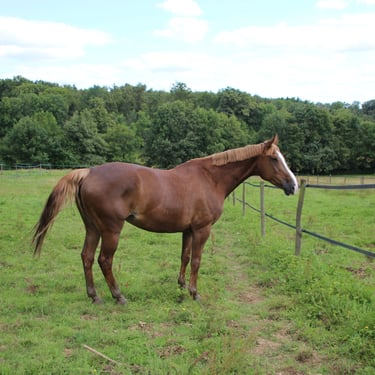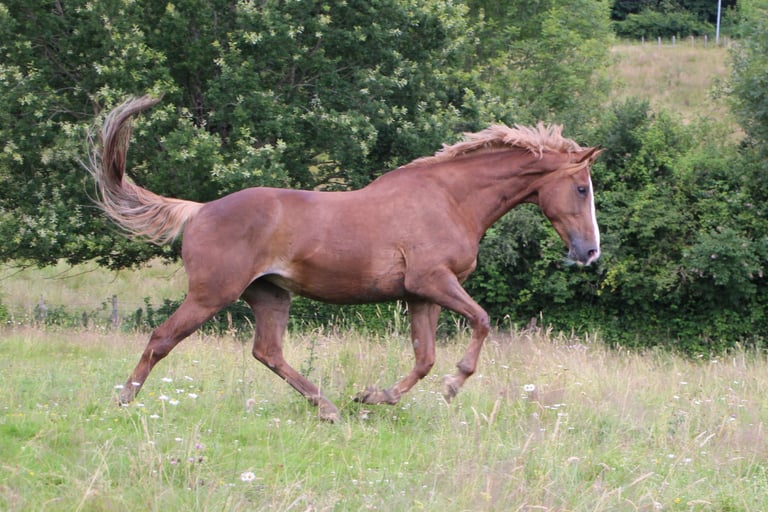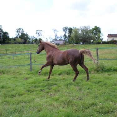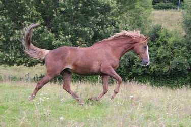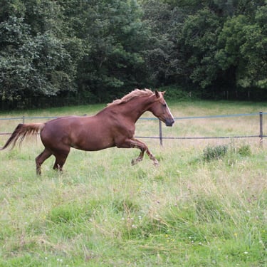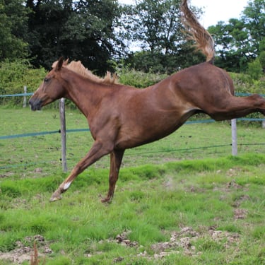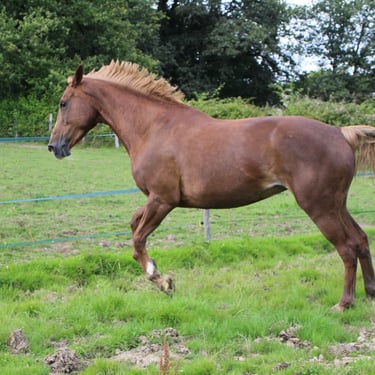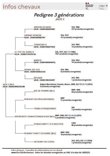 Jade est une jument d'une extrême gentillesse, une belle carrure charpentée héritée par son père le célèbre Le Tôt de Semilly, du sang et une belle technique sur les barres.